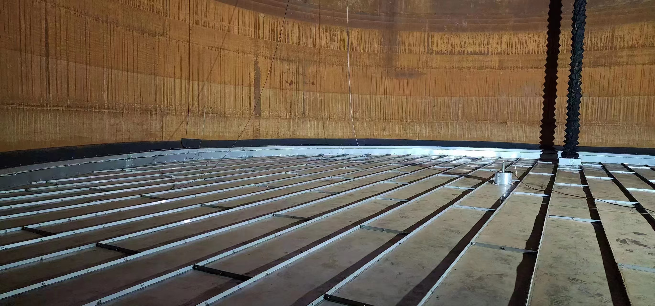 組裝式不銹鋼內(nèi)浮盤采用了井字形結構。即浮盤的骨架成井字形;所用材料均為不銹鋼材質,增加浮盤的整體結構強度,相應延長了浮盤的使用壽命。